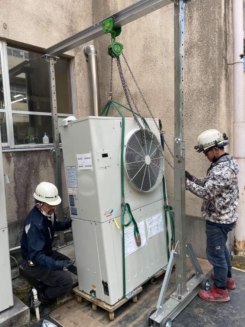 工場・プラント 移設工事 室外機移設工事 室外機の移設工事を行いました。室外機の移設工事は、エアコンや冷凍・冷蔵設備の室外機(コンデンサーユニット)を別の場所へ移動させる工事です。自社の社員と協力し、安全面に気を付けて作業に取りかかりました。株式会社ASKでは、機械搬入、据え付け、解体まで対応しております。なにかお困りごとがございましたらお気軽にお問い合わせください。 前の施工事例 工場・プラント 冷蔵庫内、室内ユニット移設工事 次の施工事例 工場・プラント 新規染色機械移設工事